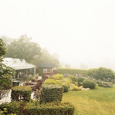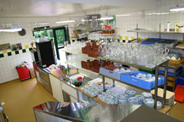 Det nye skånske køkken År 2004 skete den seneste store forandring. Det gamle køkken i bondehuset havde gjort sit. Der var helt enkelt for lidt plads og emmen fra opvaskemaskinen skadede huset. Loftet (195 cm) var for lavt til kaffekogeren, og personalet stødte sammen med gæsterne. I bakken ved drivhuset byggedes således et helt nyt køkken, fint camoufleret af græstag og næsten usynligt fra haven. Det gamle køkken blev i stedet til et nyt smørrebrødskøkken og en turistbod.